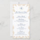 Das botanische Hochzeitsmenü aus Gold und Marineblau beinhaltet traditionelle Schriften. Umfasst die Kurstitel und -beschreibungen. Koordiniert mit dem Botanischen Hochzeitsprogramm des Gold Leaf.