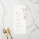 Diese eleganten, modernen Hochzeitsmenüs bieten Imitate mit goldenen botanischen Blumenbildern, Ihre Veranstaltungsdetails erscheinen in romantischer Schrift und raffinierten Serif-Schriftart. Ideal für romantische Gartenhochzeiten und moderne Hochzeiten. Sehen Sie sich alle passenden Stücke in der Sammlung an.