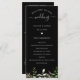 Elegante Aquarell Wildblume botanisch, Hochzeitsprogramm in schwarz. Das Programm bietet niedliche kalligraphische "Hochzeit" Akzent mit mehreren Zeilen für den eigenen Text, einschließlich, Zeremonie, Reihenfolge der Veranstaltungen, Hochzeit-Party und danke Ihnen zur Kenntnis. Entworfen, um unsere Elegant Wildblume Botanical Collection.