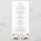 Botanisches Hochzeitsprogramm mit Blumen, entworfen mit handbemalten Wildblumen mit Aquarellstilisierung. Das Design ist im Boho-Stil für Hochzeiten im Frühling, Sommer und im Freien. Passen Sie dieses Design mit Ihren Zeremonieinformationen und auf der Rückseite, Hochzeitsfeierinfo und personalisierten Dankeschön. Die Hintergrundfarbe ist Set zu Weiß, Sie können jedoch eine Füllfarbe Ihrer Wahl wählen.
