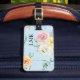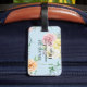 Ein buntes Spray von botanischen grafischen Blume schmückt dieses Gepäckanhänger und kann mit drei Monogramm-Initialen und Ihren Kontaktinformationen auf der Rückseite personalisiert werden.