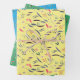 Botanisches Muster, grün-gelb, blaues Packpapier Geschenkpapier Set