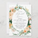 Schöne Probe-Dinner-Einladungen mit einem eleganten, modernen, neutralen pastellfarbenen botanischen Blumenrahmen in sanften Erdtönen aus Pfirsich, Orange, sanftem Weiß, Gelb, und vielen Grüntönen von Salbei-Grün bis hell und tiefer Grüntöne. Ihre personalisierten Details werden in einem erhöhten typografischen Layout dargestellt, das den Ehrengast in die Vorderseite und in die Mitte bringt.