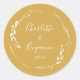Dusty Yellow Floral Wreath Monogram Personalisierte Namen und Wedding Date Script Calligraphy Classic Round Sticker