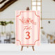 Rote Linie Kunst florale botanische Illustration über rosa Streifen Hintergrund mit rotem Text und handgezeichnet Rahmen.