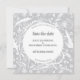 Hübsche, elegante botanische Silhouetten der Natur, weißes Blattwerk, Blätter und Blume auf silbergrauem Hintergrund. Eine wunderschöne koordinierende Save the Date-Einladung, die Sie zum Anzug Ihrer eigenen Feier ändern können. Originelle Kunst von Nic Squirrell.