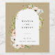 Botanisches Aquarellwald, Blume, Kiefernzapfen und Beerenbogenrahmen, personalisierte Hochzeitsflaschen-Etiketten. Die in taupe abgebildete Hintergrundfarbe kann individuell angepasst werden. Textzeilen für Vorlagennamen, Datum und Speicherort.