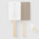 Botanisches Wappen Monogramm, Hochzeitsprogramm Handventilator. Vintages inspiriertes Wappen mit botanischen Ästen. Elegante und elegante beige-weiße Typografie mit abgestimmtem Farbhintergrund.