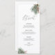 Minimal rustikale Weihnachtsmenü-Karte mit einer Aquarellblüte-Anordnung von Kiefernbeeren, roten Beeren und Eukalyptus-Blätter. Mit eleganter Handschrift Kalligraphie.