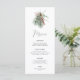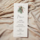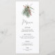 Feiern Sie stilvoll mit dieser minimalistisch rustikalen Menü-Karte aus dem Winter, die eine florale Aquarellgestaltung aus Kiefernbeeren, roten Beeren und Eukalyptusgrün bietet. Mit eleganter Handschrift Kalligraphie.