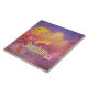 Die Mauer, in den Originalwerken von ZoeSPEAK auf dieser großen Keramik Tile, ist eine alte, rote Ziegelmauer mit einem Wandgemälde auf Stuck, das zerfällt. Das Wandgemälde ist ein Bild von puffigen Wolken im Sonnenuntergang, ganz rosa und hellgelb oben an einem tiefblauen Himmel. Die Botschaft ist, den Sonnenschein lassen.