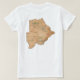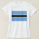Die Vorderseite dieses T - Shirt zeigt mutig die Batswana-Fahne mit ihrem unverwechselbar weißen, schwarzen Band auf blauem Hintergrund. Hinter dem Bild befindet sich eine attraktive Landkarte von Botswana.