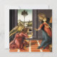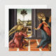 Botticelli Ankündigung Einladungen. Temperamalerei auf Tafel aus dem Jahre 1490. Sandro Botticelli war einer der großen religiösen Maler der frühen Renaissance. Ankündigung ist eines seiner bewegendsten Gemälde und zeigt den Engel Gabriel, der die Geburt Christi zur Jungfrau Maria verkündet. Der Engel hat goldene Flügel und trägt einen weichen roten Umhang mit goldenen Ärmeln und hält einen langen Lilienstamm. Ein hübsches Geschenk für Botticelli-Fans, die Kunst der frühen Renaissance und Christliche Gemälde.