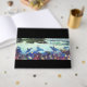 Dieses Gästebuch beinhaltet eine wunderschöne Unterwasserszene von Ronald Heinrich mit Bottlenose-Delphinen, Schildkröten und Fischen mit Wellen und Palmen über der Wasserlinie. Das Bild ist aufgrund des veröffentlichten Urheberrechts öffentlich zugänglich.