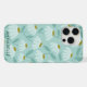 Bottom Monogram Name Teal Blue Floral Pattern iPhone Hülle