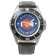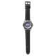 Herrenuhr aus Edelstahl mit schwarzem Lederarmband