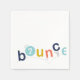 Die Bounce Geburtstagsparty Papierservietten verfügen über ein bearbeitbares Alter innerhalb des O und eine Bounce Grafik mit marineblau, aqua, gelb und orange Buchstaben. Es koordiniert mit anderen Artikeln in unserer Einladungssuite zum Geburtstag von Bounce. Klicken Sie auf Bearbeiten, um es anzupassen.