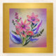 Eine Aquarellfarbe Gouache Bouquet Blume mit Texturen, gerahmt in Gold, Set vor einem schönen bunten Hintergrund. Kunstwerk Blumenstrauß Digitale Kunst.