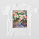 T - Shirt mit Pierre-Auguste Renoirs Ölgemälde Bouquet von Chrysanthemen und einem japanischen Fan (1880). Die Blume sind in Blau und Weiß gehalten. Ein farbenfroher Ventilator befindet sich in der Nähe. Ein gemütliches Geschenk für klassische Kunstsammler der Blume und französische Kunstliebhaber!