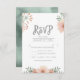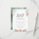 Eine wunderschöne RSVP-Karte mit einem einzigartigen dekorativen Schriftart und zarten Blumenakzenten in weichen Pastellfarben von Rosa bis Blasse Korallen. Reverse hat einen auffallenden Aquarellhintergrund in passenden Farbtönen von Salbei. Diese tropischen Karten sind perfekt für Sommer-, Strand- und tropische Hochzeiten, Geburtstage und andere Veranstaltungen. Suchen Sie nach ID654, um weitere Produkte in diesem Hochzeitsdesign-Set zu sehen.