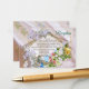 Ein Strauß mit gemischten Aquarellfarben in Blau, Rot, Gelb, Rosa und Orange wird mit goldfarbenem Rahmen und blauen oder herbstlichen Seidentexturen angezeigt