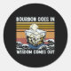 Bourbon Goes In Wisdom Comes Out 1970s Retro T Shi Runder Aufkleber