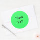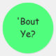 'Bout Ye? (Nordirisch für: Wie geht es dir?), Rundkleber mit schwarzer Schrift auf grünem Hintergrund.