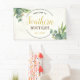 Schaufenster Banner mit südlichem Charme. Mit floralen Elementen und farbenprächtigen Farbtupfern geschmückt, um ein schlichtes, elegantes Augenscheinzeichen zu schaffen.