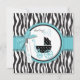 Boutique-Stil Zebra und Dot-Druck mit türkisfarbenen Akzenten und einer Babywagen.