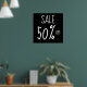 Eine elegante und attraktive "50% Off Sale"-Beschriftung in Schwarz und Weiß, geeignet für Boutiquen und Einzelhändler. Das Poster ist individuell anpassbar.