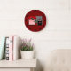 Add a touch of architectural charm to your wall with this unique storefront illustration clock. The design showcases a sophisticated shop entrance with a classic red awning and a decorative topiary, blending urban art with practical home decor. This wall clock features accurate timekeeping and a unique graphic face, perfect for decorating a kitchen, office, or living room. The modern red, black, and grey palette makes it a stylish and functional timepiece.