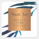 Luxuriös elegant und glamourös danke Ihnen Aufkleber mit einem schönen ozeanblau Aquarell bemalten Lorbeerfass Blätter Zweig für Hochzeitsplaner | Kosmetikerin | Makeup artist | Friseurin | Mode-Stylist | Schönheitssalon | WELLNESS-CENTER | Raumausstattungsstudio | Mode-Boutique | Florist | Gartenlandschaft-Designer oder andere kreative Unternehmen oder Profis mit glänzend beige-kupferfarbenen Metallic-Look geometrischen quadratischen Etikett. Die perfekte Wahl für ein stilvolles und elegantes Aussehen. — Personalisieren Sie es mit Ihrem Firmennamen und Text!