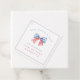 Eine ausgefeilte Aquarellbogen-Illustration mit den amerikanischen Fahnenfarben, Streifen und Sternen. Mit dem Zitat "Rot, Weiß und Blau - es ist der 4. Juli Barbeque" haben Sie das perfekte klassische Geschenktag-Design mit Ihrem Familiennamen und einer sehr trendigen, liebevollen Ästhetik. Stellen Sie sicher, dass Sie die entsprechenden Einladungs- und Grillen Party-Vorräte in der Preppy Bow 4. Juli Kollektion Karo haben.