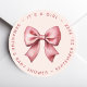 Bow Baby Shower Blush Pink & Red It's a Girl Runder Aufkleber