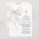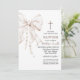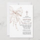 Baptism Invitation with Beige Bow and Pearls. Elegant Girl Baptism Invite. Girl Christening Invite. Mocha Taupe Bow and Pearl.