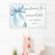 Eine charmante Babydusche im Coquette-Stil für einen kleinen Jungen. Die Kollektion mit zarten blauen Bögen, eleganten Akzenten und süßen Details umfasst alles, was Sie brauchen - von Einladungen und Bannern bis hin zu Tags und Party. Ideal, um Ihre Babydusche oder Gender Enthüllung mit zeitloser Eleganz und einer Touch von Coquette Charme zu feiern.