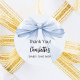 Ein hellblauer Hintergrund. Mit einem großen Bogen dekoriert. Personalisieren und fügen Sie die Mutter, um den Namen zu sein. Schwarzes handgeschriebenes Stilskript. Text: Danke!