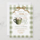 Bow Hot Cocoa 1st birthday Sage Green Gingham Einladung