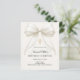 Celebrate your daughter's milestone with this elegant First Holy Communion invitation. This design features a stunning, oversized ivory silk bow adorned with delicate pearl strands and a central ornate gold cross. It is the perfect choice for a traditional Catholic ceremony or a sophisticated religious celebration for a young girl.