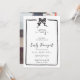 Elegante Einladungskarte mit einem eleganten, schwarz-weißen Band. Drei Foto auf der Rückseite.