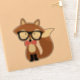 Adorable Vektorgrafik eines niedlichen braunen Fuchses mit einer übergroßen Lesebrille und einem rosa Polka-Punkte Muster Bogen-Krawatte auf einem hellbeigen oder cremefarbenen Hintergrund.