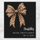 Ein schwarzer Hintergrund. Mit einem großen Bogen mit Leopardenprint dekoriert. Personalisieren und fügen Sie den Namen der Braut und ein Datum. Schwarzes handgeschriebenes Stilskript.
