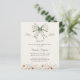 An elegant soft ivory background, decorated with a floral bow in muted green and muted pink. Personalize and add a name and party details. Text: She's tying the Knot.
