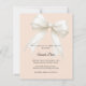 Feiern Sie die bevorstehende Ankunft eines kleinen Schatzes mit dieser eleganten, zartrosafarbenen Babyshower-Einladung, die mit einer wunderschönen, dekorativen Elfenbeingarnitur mit zarten Perlendetails versehen ist. Der zarte, cremefarbene Pfirsichhintergrund schafft einen warmen, weiblichen und zeitlosen Look, der perfekt für eine stilvolle Babyshower-Feier ist.