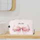 Ein weich rosa Hintergrund. Die Einrichtung ist mit einem großen rosa Bogen geschmückt. Personalisieren Sie Ihren Namen und fügen Sie ihn hinzu.