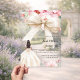 Der helle, durchsichtige Hintergrund ist mit einem großen, cremefarbenen Bogen, rosa Blume und einem Mädchen in einem cremefarbenen Kleid dekoriert. Personalisieren und fügen Sie einen Namen und Party-Details hinzu.