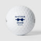 These golf balls are a great favor for the groom in your wedding. They feature a blue bow tie with the groom's name above it in a modern CAP font and the word Groom along with the wedding date below. They'd be great for a bachelor party or weekend. The job title can be changed to Groomsman, Best Man, Usher, etc.