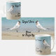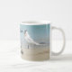 Eine Tasse zum Thema Küstenstrand mit einer spielerischen, lustigen, lichtdurchfluteten Drehung von Royal Terns an einem Strand, der scheinbar bowing, Bow to Royalty! Ein Royal Tern Seevögel pflückt und prächtig an einem sonnigen Sandstrand. Dieser fotografische Vogel wurde an der Küste Floridas gefangen genommen. Kann mit einem Namen personalisiert werden. Das ist die originale Vogelfotografie von JLW_FOTOGRAFIE.