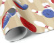 Egal ob es sich um einen neuen Bowlingball, ein Bowling-Shirt oder einfach nur um ein besonderes Geschenk für Ihren Lieblings-Bowler handelt, legen Sie mit diesem gemusterten Packpapier die perfekte Touch auf Ihr Geschenk. Realistische Bilder von Bowlingkugeln, Bowling-Buttone und Bowling-Schuhen in Rot, Weiß und Blau sind Set vor einem bräunlich gestreiften Hintergrund.