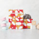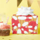 Geschenkpackung mit roten Bowlingkugeln und Buttonen über eine gestreifte 10 Button Bowling Gasse bedruckt. Ideal für Ihr nächstes Bowling-Party